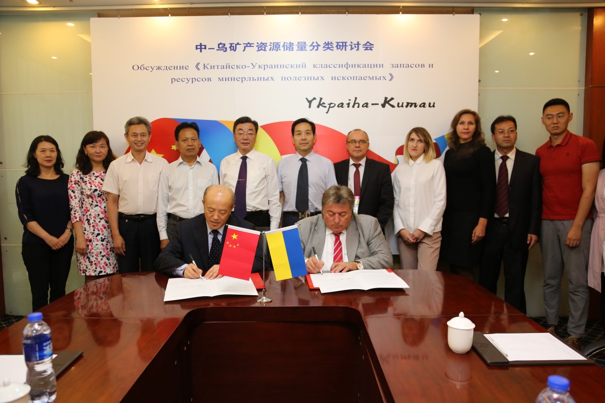 Знаковою подією впродовж візиту української делегації до Китаю стало підписання Меморандуму про співдружність і співробітництво між Центром оцінки запасів і ресурсів корисних копалин Міністерства земель і ресурсів КНР та ДКЗ, що є наріжним каменем подальшої співпраці організацій у питаннях, що стосуються вдосконалення та уніфікації звітності про запаси та ресурси корисних копалин на основі РКООН-2009 та створення глобального кодексу звітності про запаси і ресурси корисних копалин на основі національних класифікацій України та Китаю.