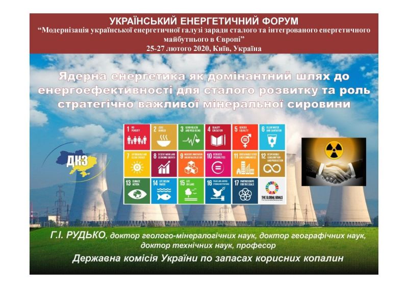 Голова Державної комісії України по запасах корисних копалин Г.І Рудько виступив з презентацією "Ядерна енергетика як домінантний шлях до енергоефективності для сталого розвитку та роль стратегічно важливої мінеральної сировини" в рамках шостої сесії форуму "Які технології та передовий досвід можуть допомогти у розвитку галузі розвідки та видобування в Україні?", що відбувалась 26 лютого.