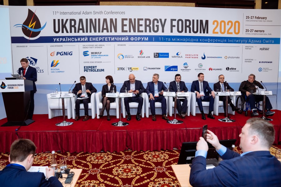 | Учасники Шостої сесії 11-го Українського енергетичного форуму (зліва-направо): Г. Кобаль (модератор секції, ExPro Consulting), О. Логунов (Група Нафтогаз), С. Нєжнова (ДАТ "Чорноморнафтогаз"), І. Плачков (ГС "Всеукраїнська Енергетична Асамблея"), М. Оринчак (Полтавська газонафтова компанія), Р. Маммадбайлі (SOCAR AQS), С. Козицький (бурова компанія “Горизонти”, ТОВ “Західнадрасервіс”), І. Гафич ( ДТЕК Нафтогаз), Г. Рудько (Державна комісія України по запасах корисних копалин) |